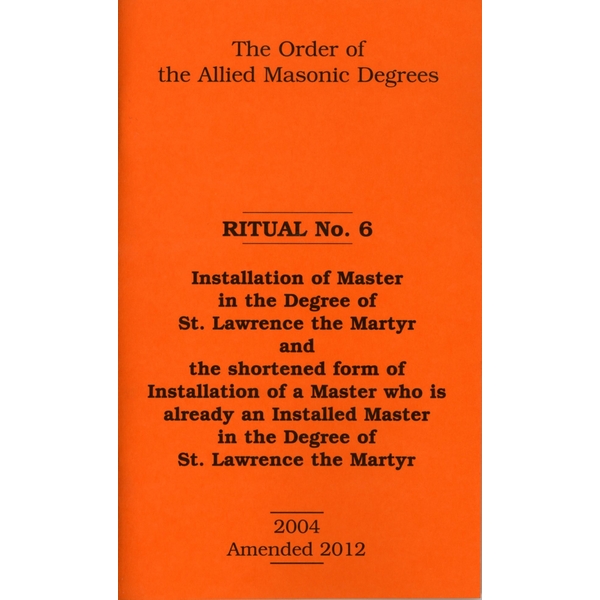 Allied Degree No 6 " Installation of Master in the Degree of St. Lawrence the Martyr and the shortened form of Installation of a Master who is already an Installed Master in the Degree of St. Lawrence the Martyr.