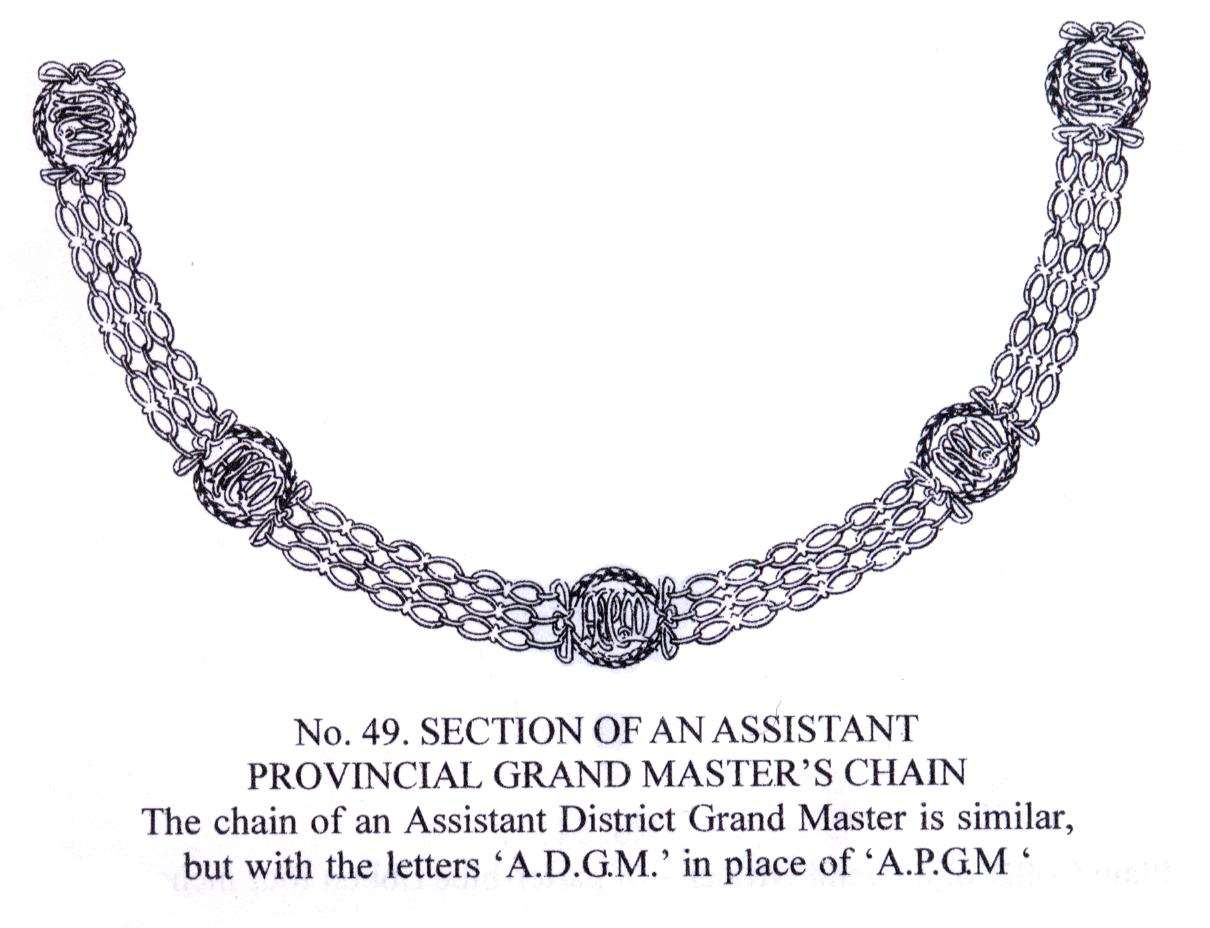 The Craft Assistant Provincial Grand Master Chain Collar is a brilliant piece of workmanship. The chain collar adorns an extravagant gold design throughout; using masonic symbols and the acronym for an Assistant Provincial Grand Master (APGM). The piece is UK manufactured and expertly polished to give a wonderful sheen; it is sure to impress you. This piece can also be included, sewn on to a high quality velvet back collar by our specialist team.