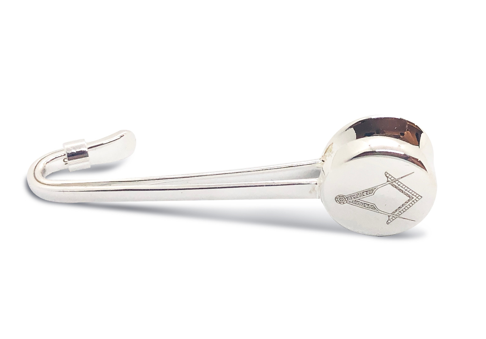 Elegant and functional, the Sterling Silver Napkin Hook is simply popped over your collar to prevent nasty stains and messes. This napkin hook - sometimes known as a napkin holder - is one of our most popular gifts in the UK and US. The hook can be supplied in a luxury Masonic Collection branded velvet pouch or one of our luxury giftboxes.