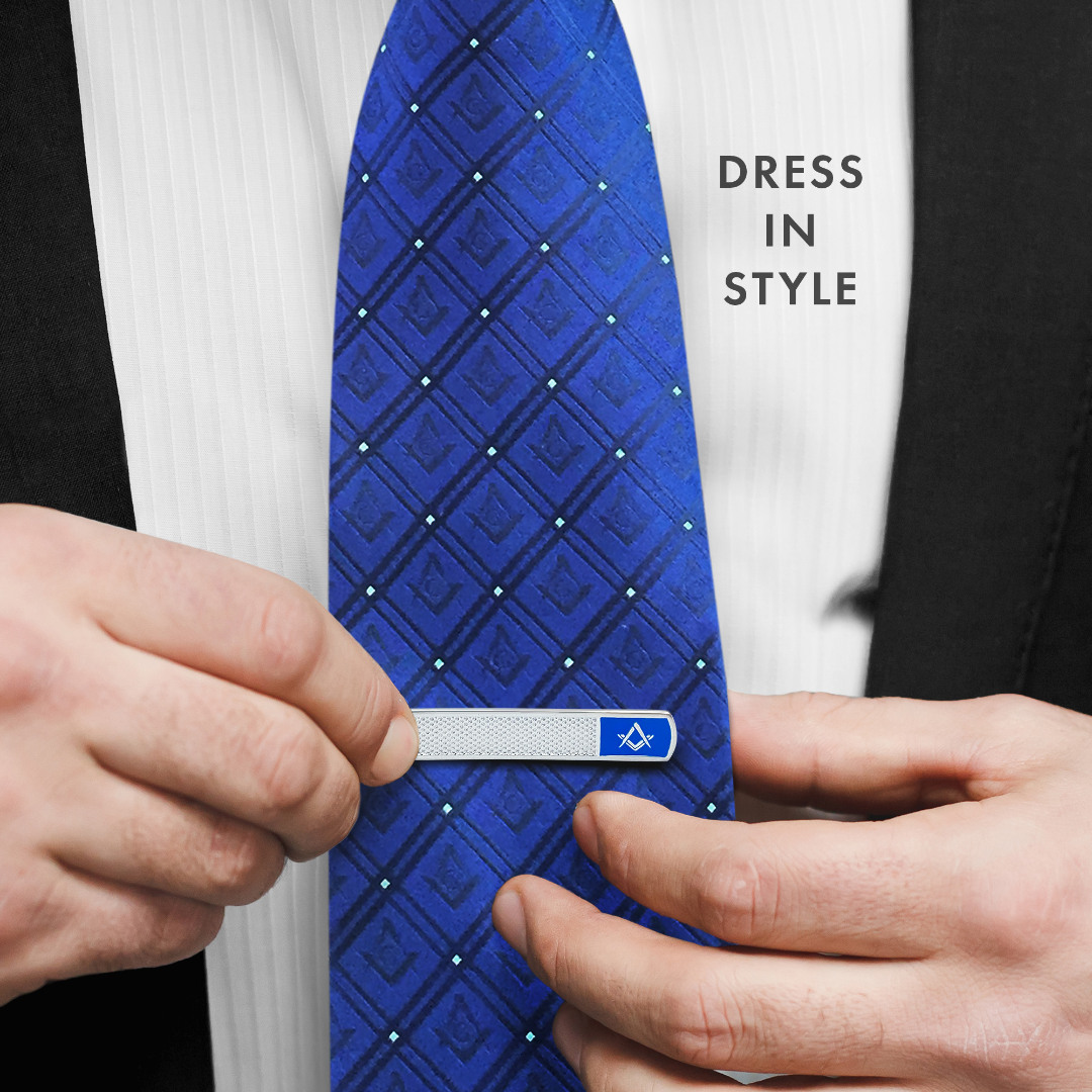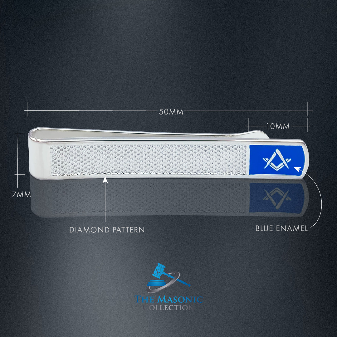 Elegant and functional, this stunning Sterling Silver Tieslide would be the perfect finish to your attire. Solid Silver with Diamond cut pattern along with the Square & Compass emblem set on a Blue enamel, has 925 stamp to the back.