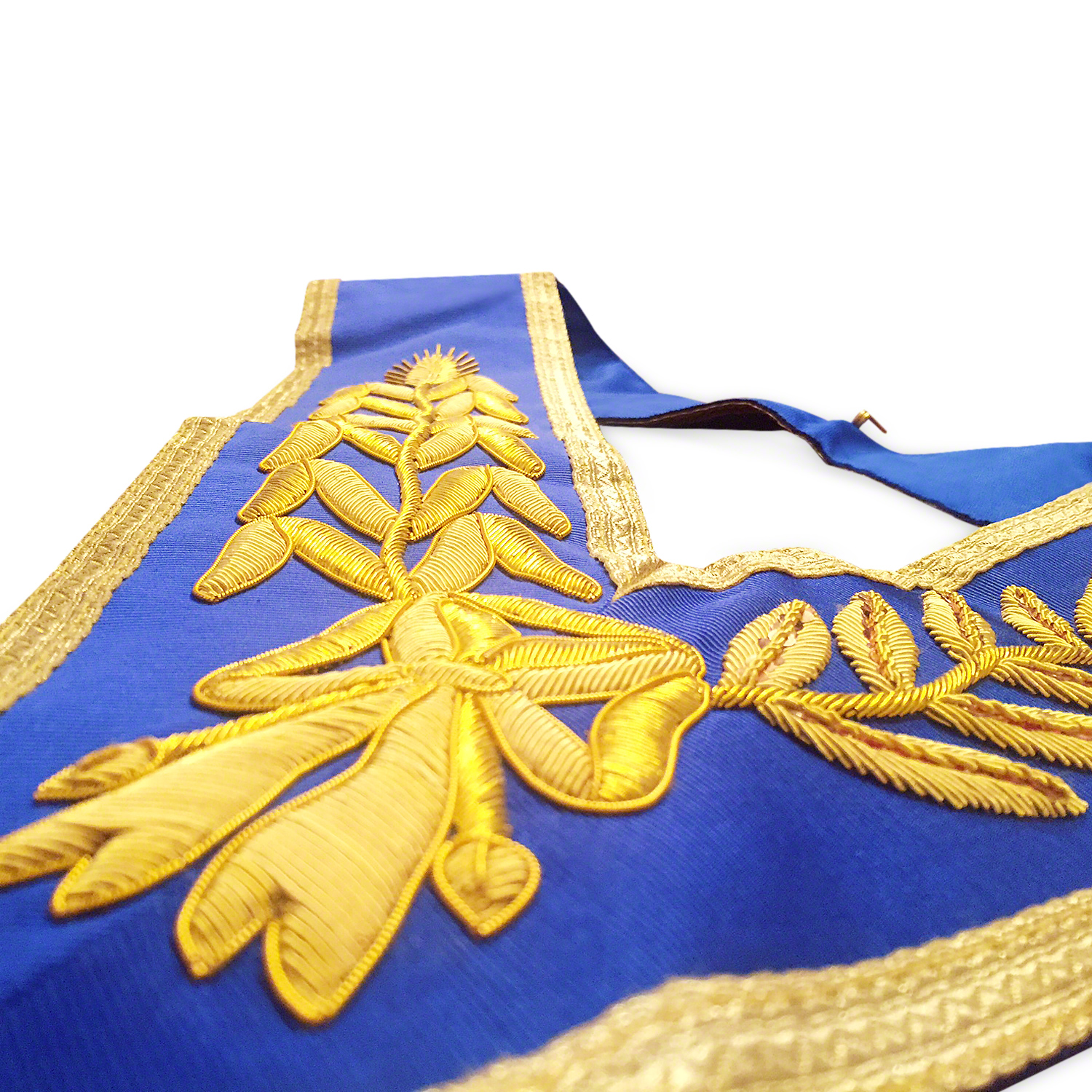 Finest quality bullion wire hand embroidered Craft Grand Degree Full dress collar. Collar is made to the highest quality with heavy hand embroidery as you would expect for such a privileged masonic appointment. Order early as production time for this piece takes 2-4 weeks and we do not like to rush such an elegant collar.