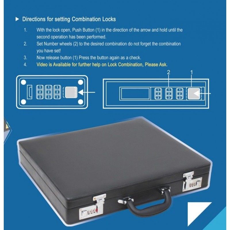 We present you the Luxury Freemason's Classic Layflat Provincial Brief Case, made especially for you. The quality is of what you'd expect and more from Masonic Collection Limited. We provide you with a Brief Case that is perfect for keeping your provincial regalia safe and secure, with it's water and dust proof outside, sturdy build and gilt plated durable hinges. The surface is the highest quality imitation leather with a smooth, polished feel to it. One look at this case and you will surely see the effort and care put in every step to the making of the case; you can see neat stitching throughout the case and brilliant design choices that ultimately finish the look of this Luxury Freemason's Classic Layflat Provincial Brief Case. The case uses two strong, gilt plated number locks to keep your regalia kept in the case, and can be set to whatever number you choose with ease. The bottom of the briefcase features gilt plated stud feet either corner to keep the case upright and above the floor to avoid any scuffs or marks on the case. The stylish black helps highlight the gleaming gold handle fittings, stands, hinges and number locks.