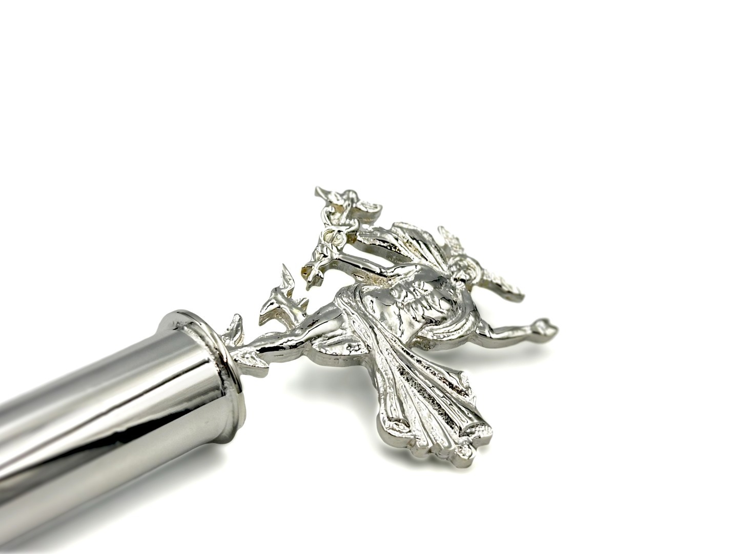 This is the Mark Wand Top, plated and polished to a very high standard. This piece is UK manufactured and designed magnificently. The wand tops easily attach to wands of your choice. Before completing your order with us please choose the office you would like the wand to be designed after.