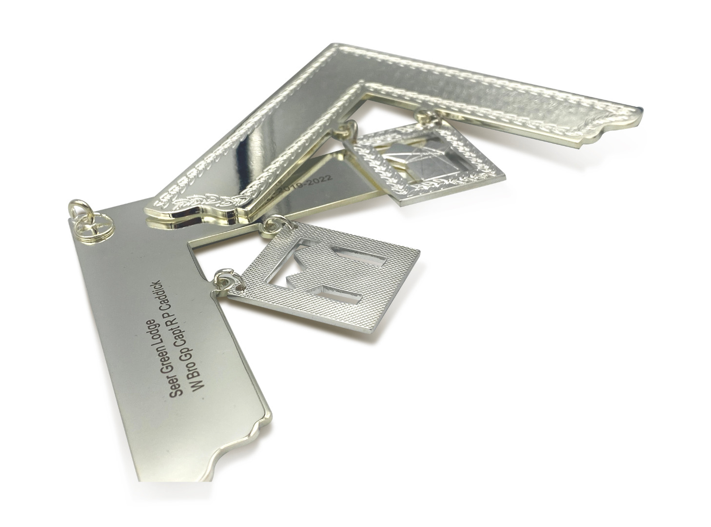 The Personalised Craft Past Masters Collar Jewel is designed and custom engraved in an elegant way to offer you a perfect look in various lodge investiture ceremonies, dinner parties, festivals etc. This silver coloured collar can be a perfect gift for your past masters. It comes with a premium level of silver plated coating which enhances its beauty to a great extent. It is a perfect companion to your Craft Past Masters Collar. Please fill out your desired engraving whilst specifying which leg the engravings will go on.