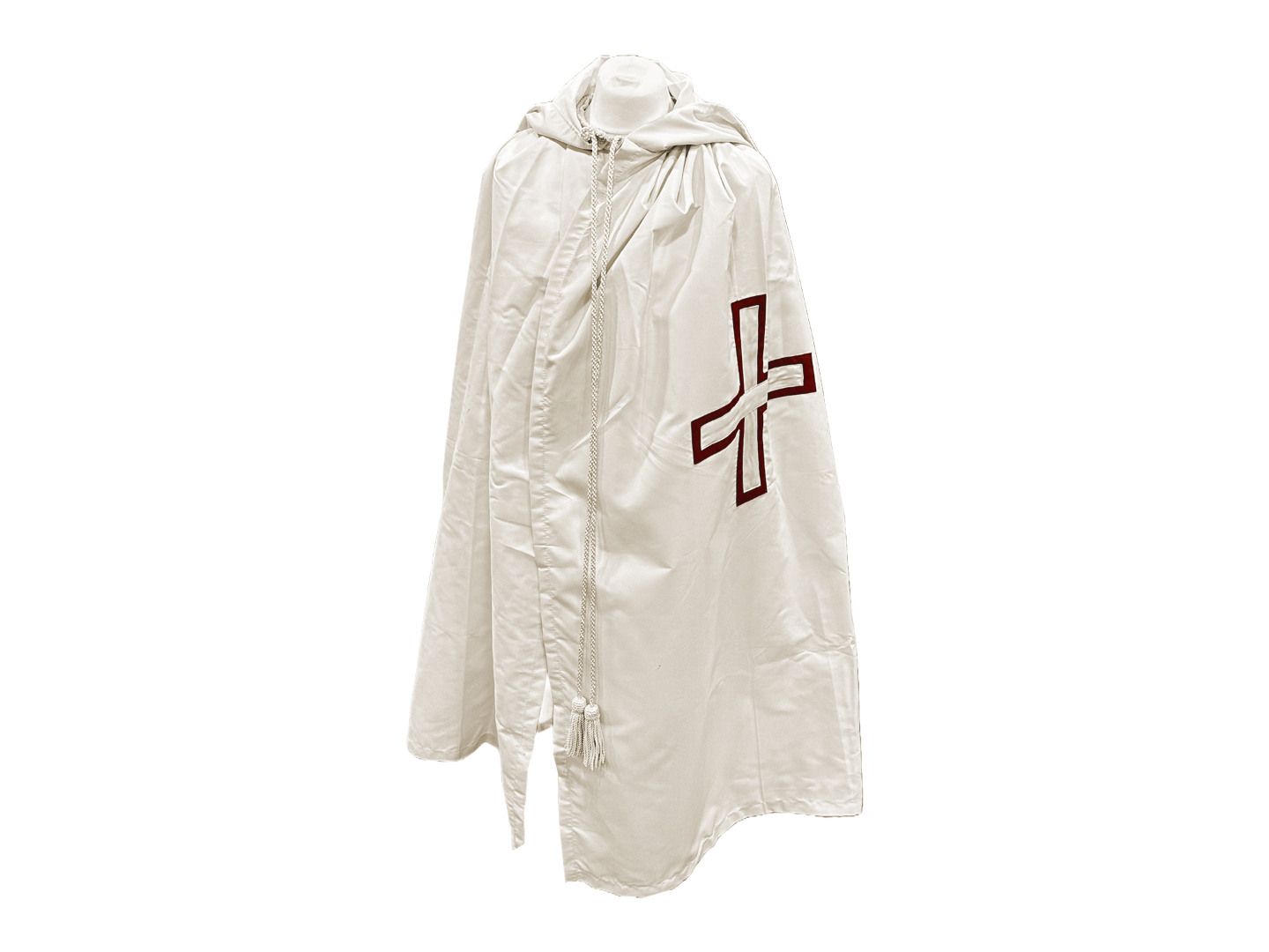 This is the Saint of Thomas of Acon Mantle. A fantastic piece of regalia, perfect for wearing at your lodge events & ceremonies. It is made with high quality fabrics that provide you with a comfortable fit and spotless look. The piece can be worn on the shoulders with the draw strings that have a high thread count tassels. On the side of the mantle can be found the St. Thomas of Acon Cross, expertly hand embroidered on. We provide the mantle in a variety of sizes so we will be able to provide for all kinds of Freemasons, so order with us now to take advantage of our swift delivery to your doorstep.