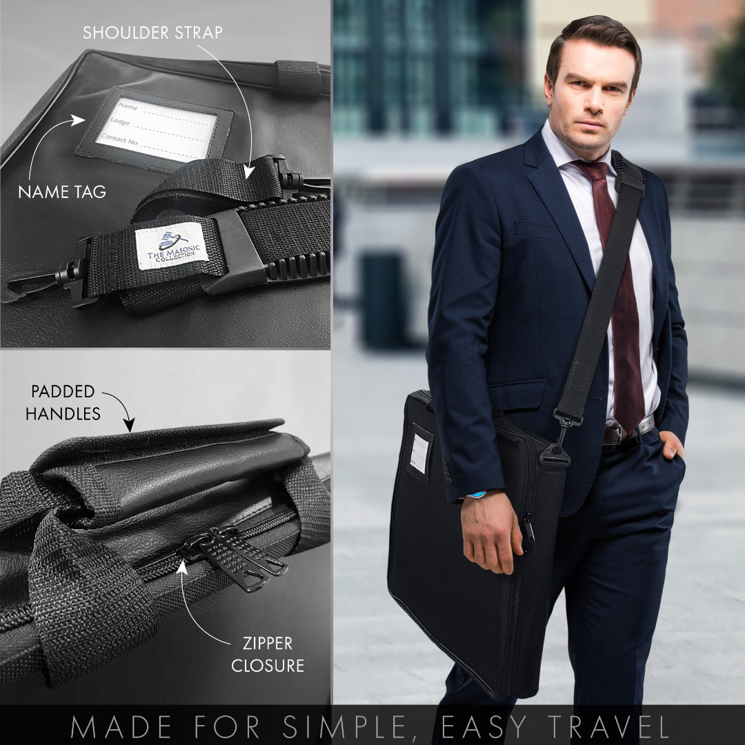 Grand Rank holder shoulder bag is perfect for those who have grand rank size masonic aprons. The bag is the way to secure your aprons from any bruise and damage. You may keep costly and well-crafted Grand Rank size masonic aprons in it safely. Masonic Grand Rank Regalia Soft Case / Apron Holder Shoulder Bag is made with finest quality of material. This black apron shoulder bag is elegantly crafted by the master weavers with high level of detailing and stitching. It is available at discounted price with Online Masonic Regalia.
